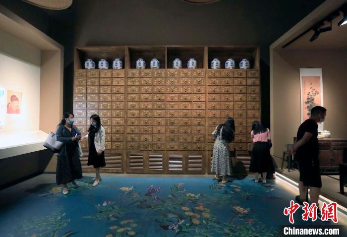 觀眾在觀看展出的中醫(yī)藥房。 王磊 攝