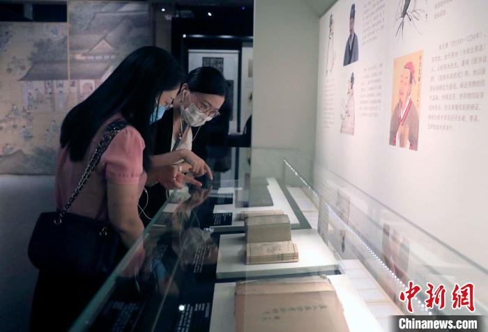觀眾在觀看展出的中國傳統(tǒng)醫(yī)學文獻?!⊥趵?攝