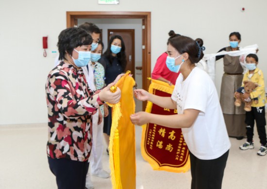 鄧?yán)蚋敝魅我恍锌赐藖碛逯委煹?5位患兒,并為他們送上嶄新的書包和文具。并與患兒家長(zhǎng)熱情交談,詳細(xì)了解患兒恢復(fù)情況?;純杭覍俅碜楷敽屯贩謩e向重慶市衛(wèi)健委和重醫(yī)附屬兒童醫(yī)院贈(zèng)送了錦旗,并獻(xiàn)上了潔白的哈達(dá)表示感謝。