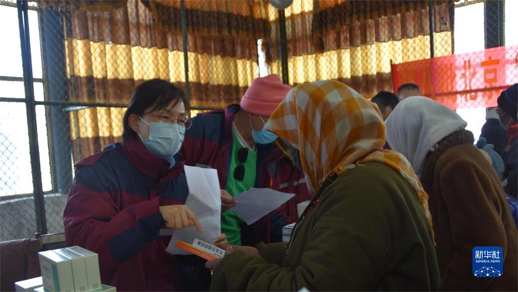 3月23日,援藏醫(yī)生向村民叮囑藥品的服用方法和禁忌等注意事項(xiàng)。新華社記者 黃耀漫 攝