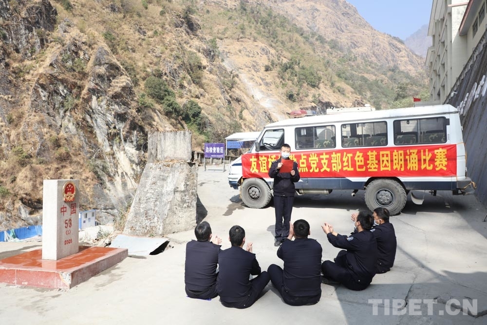 中國西藏網(wǎng)訊 為提升完善四強黨支部建設,豐富一線執(zhí)勤民警文化生活,1月27日,西藏自治區(qū)聶拉木出入境邊防檢查站友誼橋執(zhí)勤點在53號界碑旁舉行紅色基因朗誦比賽,為中國共產(chǎn)黨百年華誕獻禮。