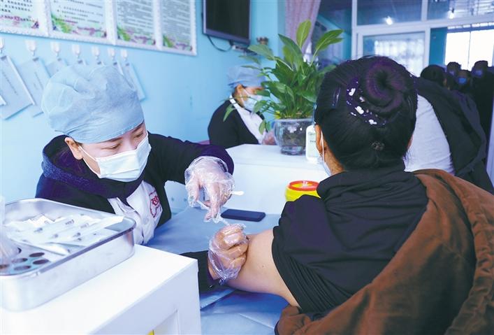圖為城關(guān)區(qū)轄區(qū)重點人群正在接種疫苗。 記者 格桑倫珠 本報通訊員 陳海兵 實習生 尼瑪拉珍 攝