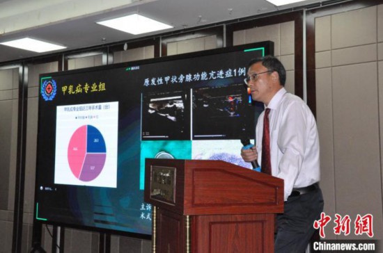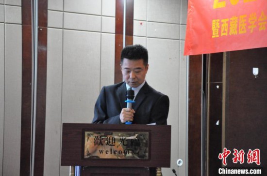 圖為巴桑頓珠介紹西藏自治區(qū)人民醫(yī)院普通外科和西藏醫(yī)學(xué)會(huì)普通外科分會(huì)的概況?!〉┰鲐暽?攝
