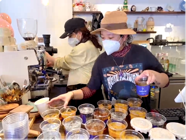 圖為“?Coffee Bar”咖啡店工作人員在為抗疫一線工作人員準(zhǔn)備愛(ài)心咖啡