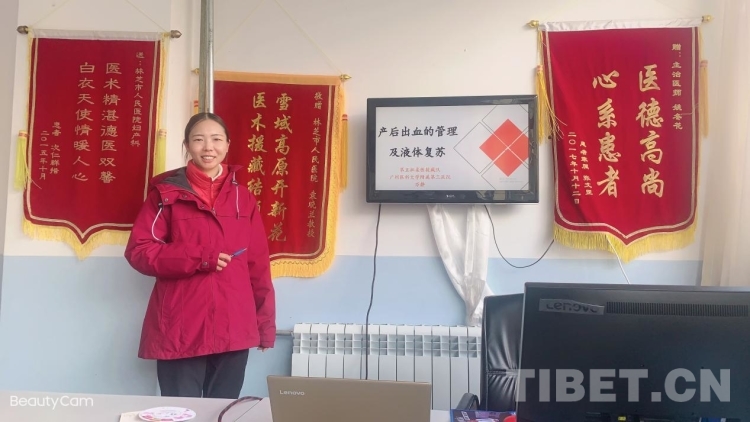圖為萬靜給林芝市人民醫(yī)院婦產(chǎn)科同事進(jìn)行培訓(xùn)