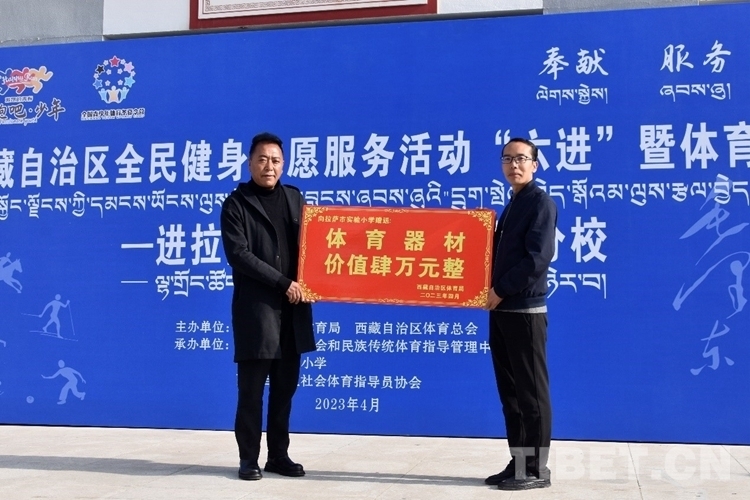 活動(dòng)開(kāi)幕式現(xiàn)場(chǎng),西藏自治區(qū)體育局社體中心向拉薩市實(shí)驗(yàn)小學(xué)東城分校,配發(fā)了價(jià)值四萬(wàn)元整的校園體育器材,保障學(xué)生日常體育運(yùn)動(dòng)需要?! ?/p>