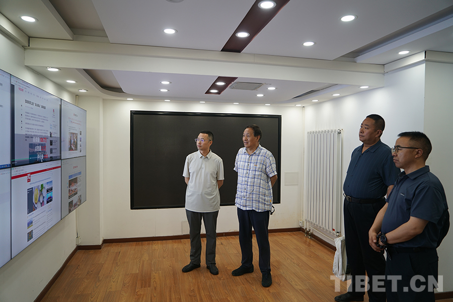 圖為三江源生態(tài)保護(hù)基金會一行觀看中國西藏信息中心宣傳片 攝影:陳浩力