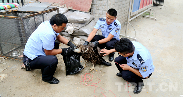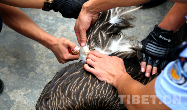 過了一會兒,正在路邊施工的工人發(fā)現(xiàn)了我,他們立即打電話。后來我才知道,他打到了丹巴縣環(huán)林局野??疲ㄟ@可是專門負(fù)責(zé)保護(hù)動物的機(jī)構(gòu)喔)。隨后,就見有穿制服的工作人員來了,救星??!他們給我檢查了身體,發(fā)現(xiàn)了我右爪脫臼傷情,就把我?guī)Щ氐搅说ぐ蜕止簿帧?/p>