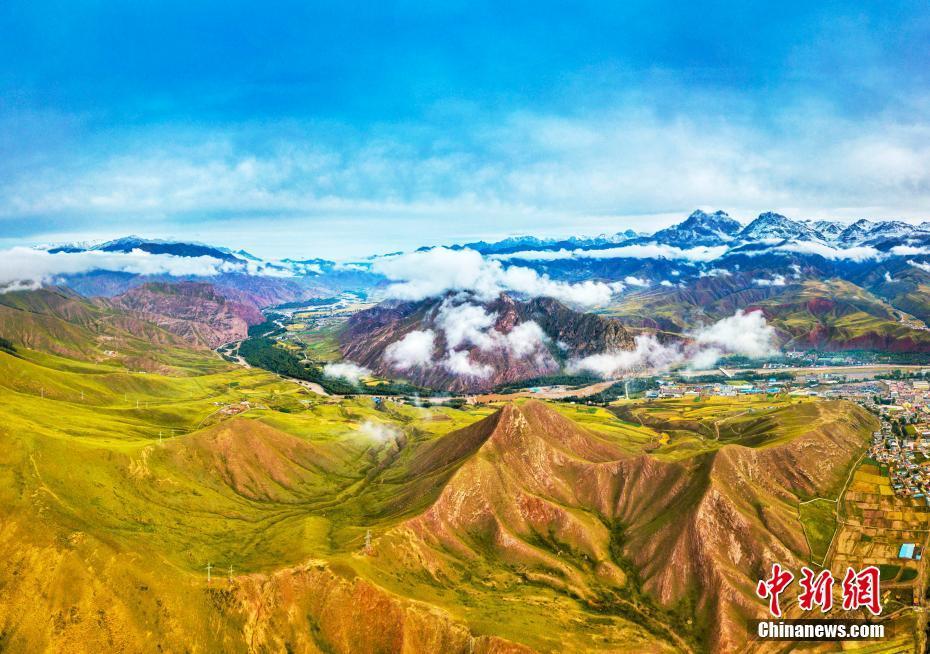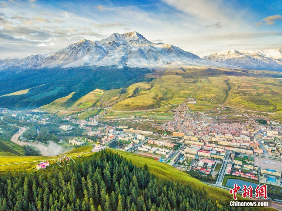 近日,航拍攝影愛(ài)好者在青海省海北藏族自治州祁連縣進(jìn)行拍攝,用航拍鏡頭記錄了中國(guó)祁連山下的最美草原。祁連縣位于青海省的東北部,北鄰古絲綢之路的首要通道甘肅河西走廊,故有青?!氨贝箝T(mén)”之稱。全縣國(guó)土面積1.4萬(wàn)平方公里,共有草原1764萬(wàn)畝,是青海省畜牧業(yè)基地。進(jìn)入金秋時(shí)節(jié)的祁連草原,陽(yáng)光艷麗而溫暖。祁連地區(qū)其多樣性的地理地貌構(gòu)成了具有草原、雪山、林海、峽谷、冰川等獨(dú)特的原生態(tài)景觀;悠久的歷史、多樣的民族宗教文化構(gòu)成了多姿多彩的人文景觀,使祁連縣旅游資源具有原始性、神秘性、多樣性、生態(tài)性兼容的特點(diǎn),有著“天境祁連”、“東方瑞士”等美譽(yù)。