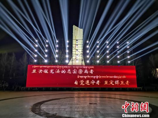 12月3日晚8時(shí),在近千名拉薩各族民眾的見證下,80盞LED集束燈同時(shí)向布達(dá)拉宮和四周投射出絢麗的燈光,與此同時(shí),現(xiàn)場的LED大屏幕開始倒計(jì)時(shí),一場“法治燈光秀”就此拉開了序幕。