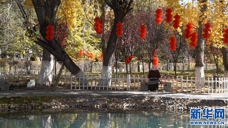 金秋的宗角祿康公園景致別有一番滋味:藍(lán)天、碧水與遠(yuǎn)處的雪山交相輝映,一切仿佛是畫家手中的調(diào)色盤,美的恰到好處。
