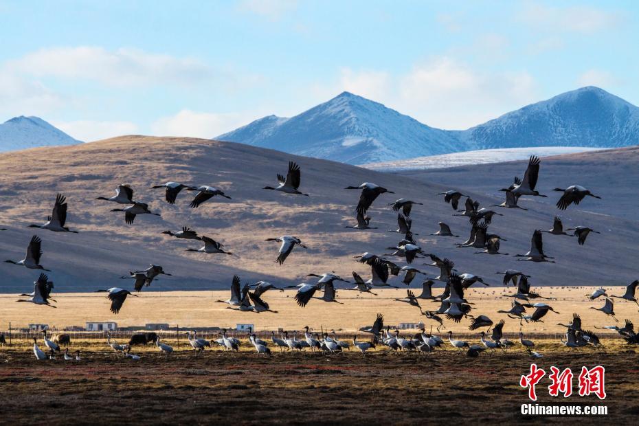 2019年首批黑頸鶴遷抵青海玉樹嘉塘草原
