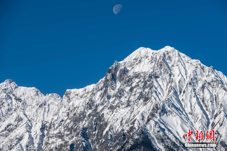 圖為雪山與月亮相互映襯。何蓬磊 攝