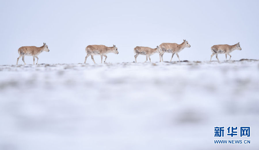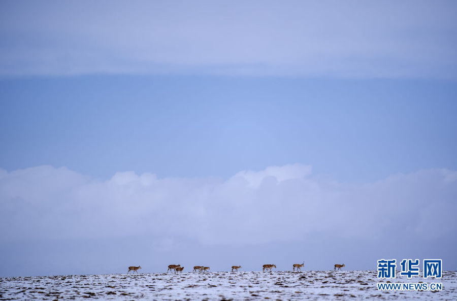 近日,可可西里迎來(lái)降雪,大量藏羚羊匯聚在可可西里五道梁地區(qū),踏上遷徙之路。