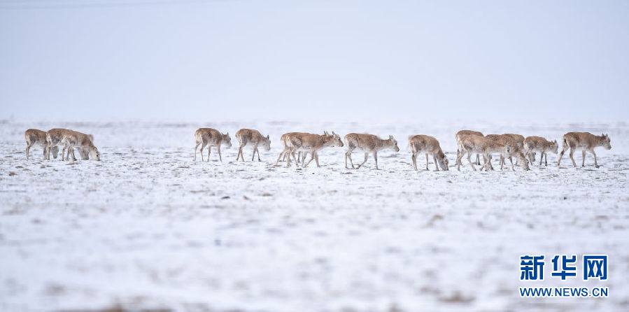 4月20日,一群遷徙藏羚羊在雪地上留下腳印。新華社記者 吳剛 攝