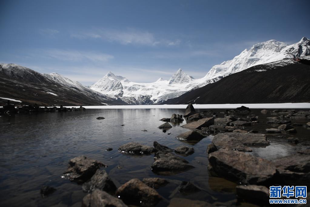 這是5月4日拍攝的薩普雪山和雪山腳下的冰湖(無(wú)人機(jī)照片)。新華社記者 孫瑞博 攝