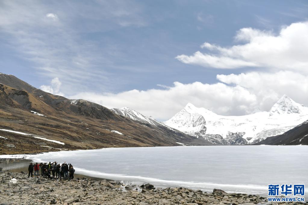 一陣強(qiáng)風(fēng)掠過(guò)薩普雪山腳下的冰湖時(shí)卷起湖面的薄冰(5月4日攝)。新華社記者 孫瑞博 攝