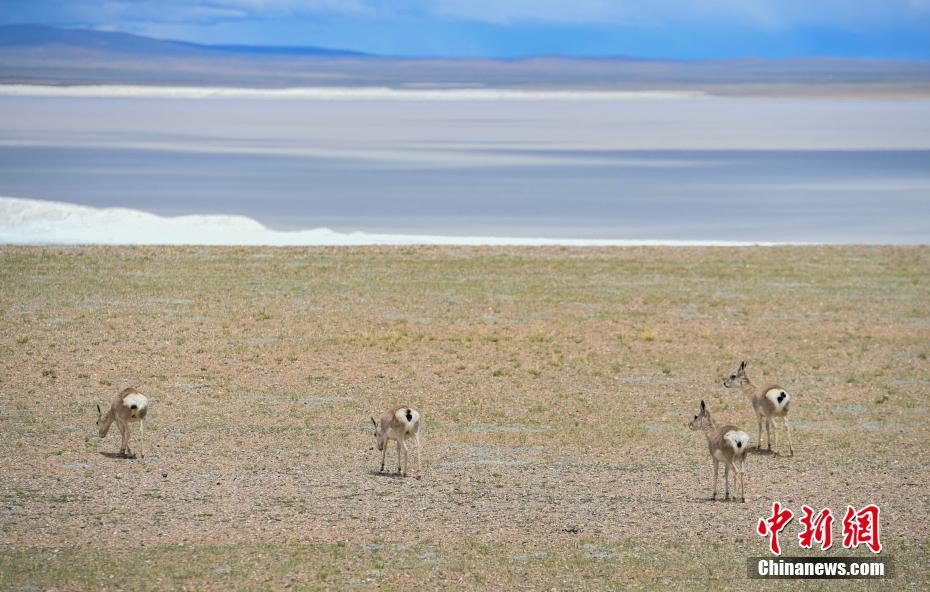 6月17日,西藏那曲羌塘草原上的藏羚羊。羌塘草原位于西藏自治區(qū)北部,平均海拔超過(guò)4600米,是目前中國(guó)海拔最高、面積最大的自然保護(hù)區(qū)。這里是野生動(dòng)物的樂(lè)園,藏羚羊、藏原羚、藏野驢等珍稀野生動(dòng)物與雪山、草地、藍(lán)天、白云,構(gòu)成撼人心魄的壯美畫(huà)面。 中新社記者 貢嘎來(lái)松 攝