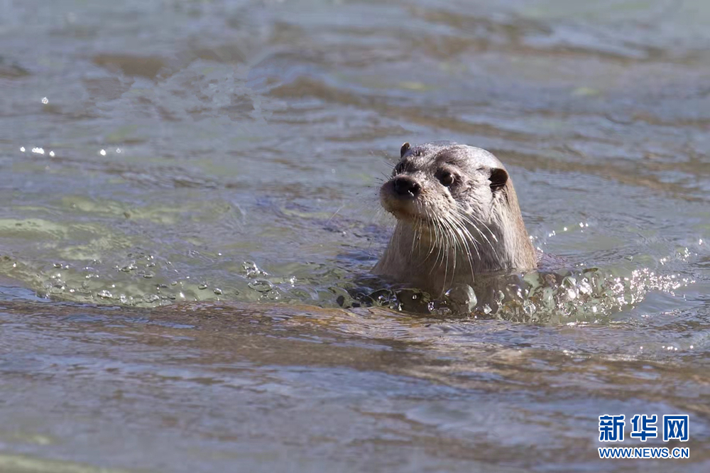 一只歐亞水獺在水中游動(dòng)。新華網(wǎng)發(fā)(文德 攝)