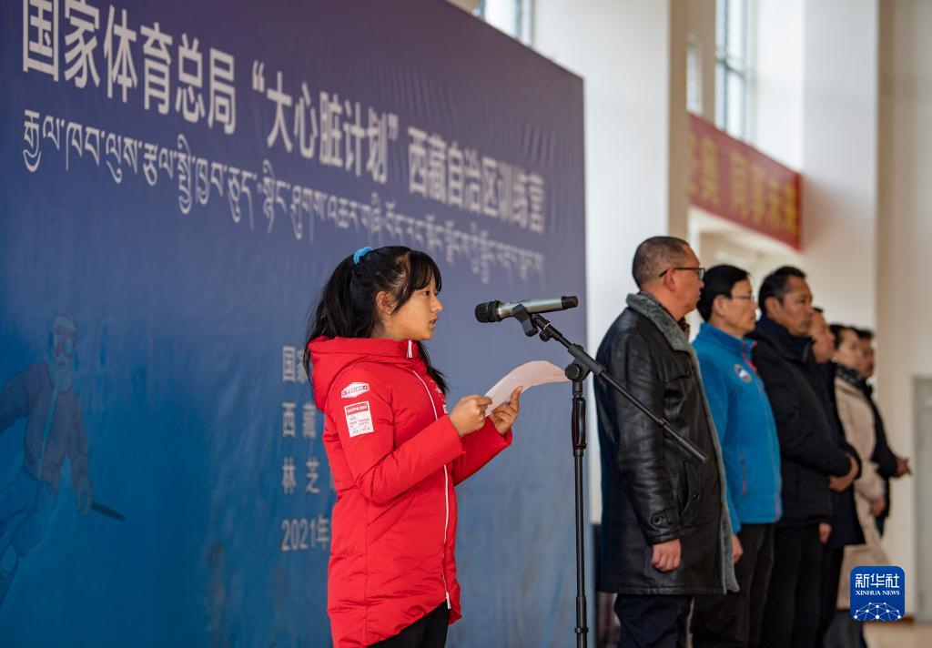 12月30日,西藏自治區(qū)體育局局長尼瑪次仁在國家體育總局“大心臟計劃”西藏自治區(qū)訓練營開營儀式現場,向學員們介紹訓練營情況。新華社記者 孫非 攝
