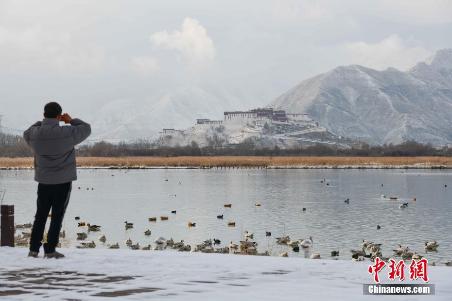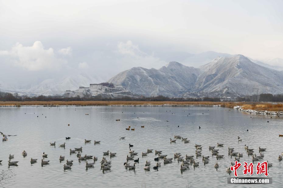 2月21日,從拉魯濕地遠(yuǎn)眺布達(dá)拉宮。當(dāng)日,西藏拉薩市迎來(lái)降雪,雪后的拉薩城區(qū)和周?chē)荷桨籽┌}皚,風(fēng)景如畫(huà)。 中新社記者 貢嘎來(lái)松 攝