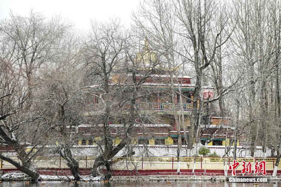 2月21日,拉薩市宗角祿康公園雪景。當(dāng)日,西藏拉薩市迎來(lái)降雪,雪后的拉薩城區(qū)和周?chē)荷桨籽┌}皚,風(fēng)景如畫(huà)。 中新社記者 貢嘎來(lái)松 攝