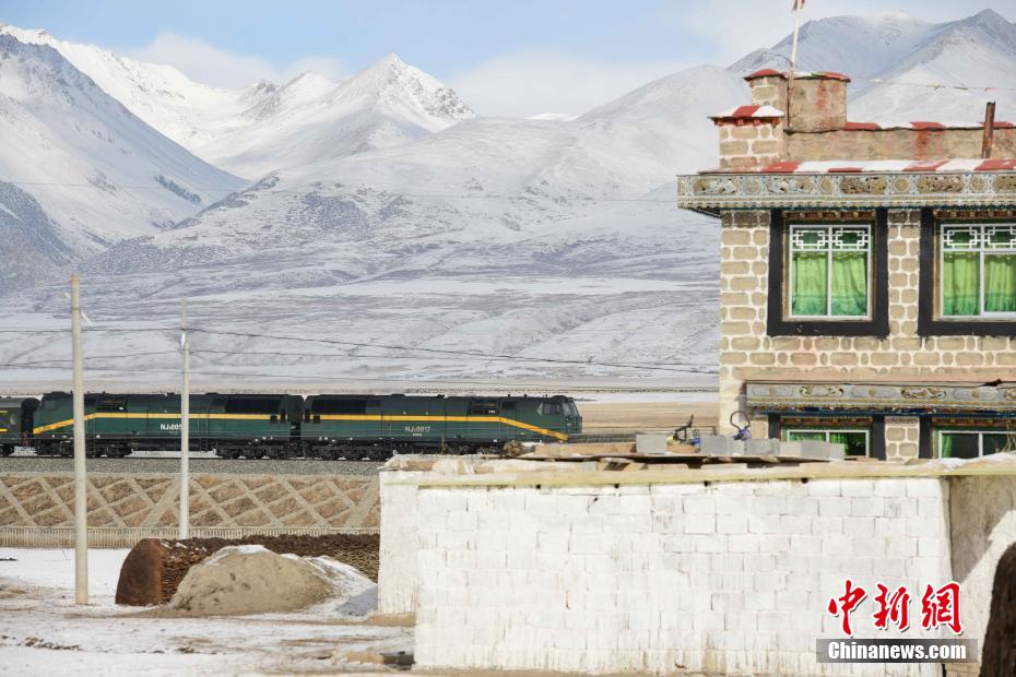 圖為一輛火車從當雄縣阿熱濕地牧民家前經過。 貢嘎來松 攝