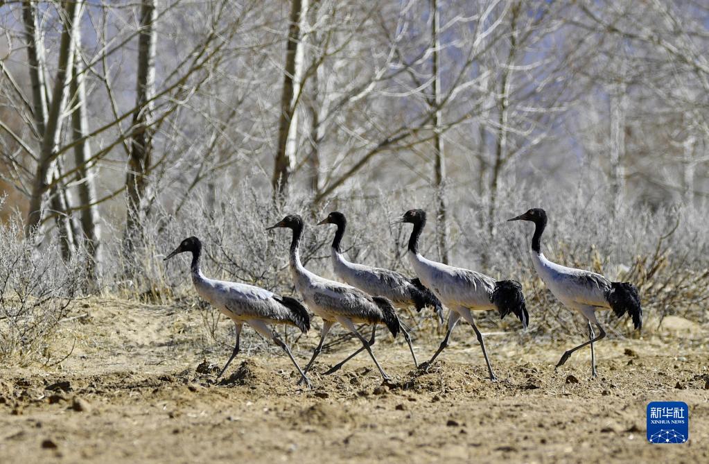 這是在南木林縣境內(nèi)拍攝的黑頸鶴(3月29日攝)。新華社記者 張汝鋒 攝