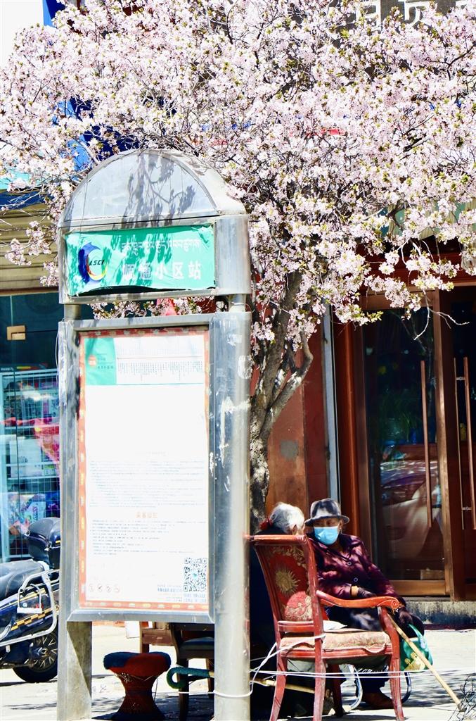 住在拉薩靠北邊的市民同樣能一飽眼福。娘熱北路兩側的榆葉梅已全部綻放,而緊鄰娘熱路的慈松塘中路和慈松塘東路更是一片春花爛漫的美好景象。慈松塘中路和北路的榆葉梅栽種較為密集,成團成簇的淡粉色花朵擠在枝頭,樹下乘涼的老奶奶、樹邊??康墓卉?,在花朵的加持下,隨手一拍便是故事感極強的畫面。