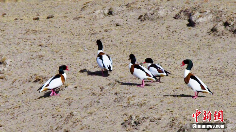 圖為青海湖邊散步的候鳥。 張世偉 攝