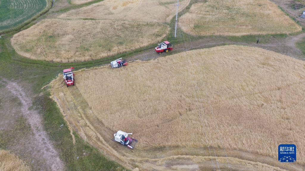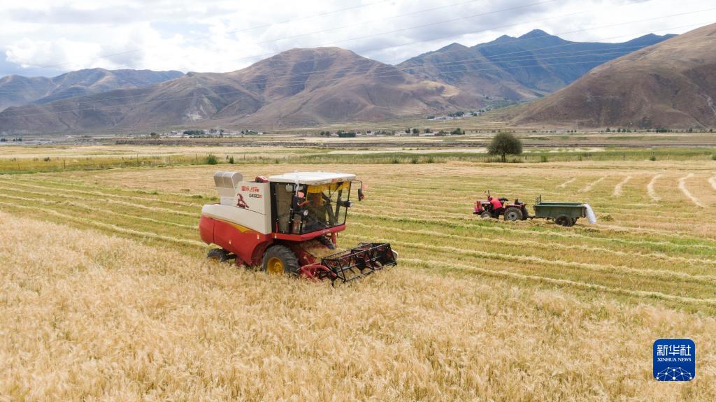 西藏拉薩市墨竹工卡縣扎西崗鄉(xiāng)農(nóng)民收獲青稞(8月29日攝)。新華社發(fā)(洛克攝)
