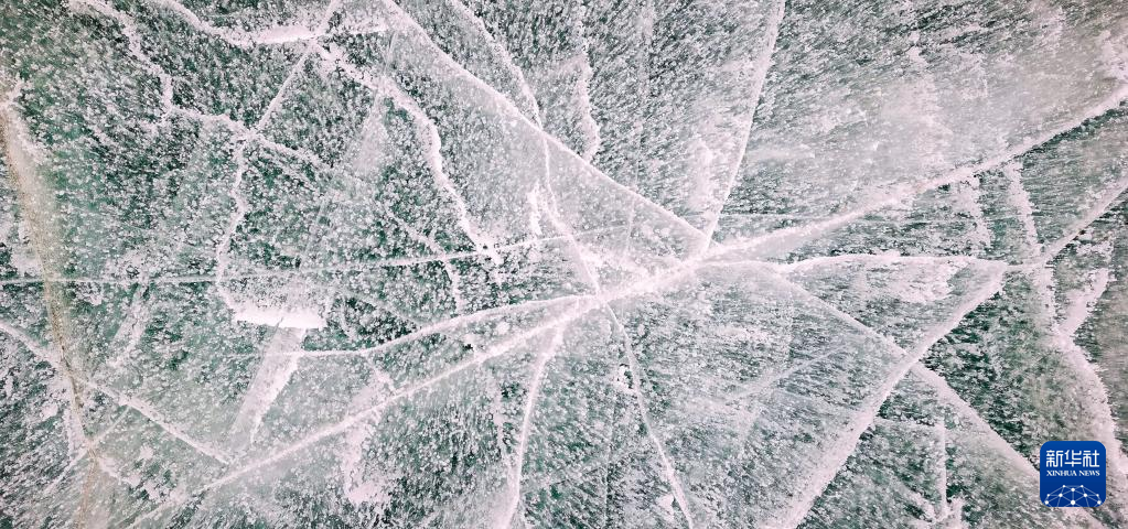 這是瓊穆崗嘎冰川冰湖湖面的“氣泡冰”(手機照片,2月20日攝)。新華社記者 沈虹冰 攝