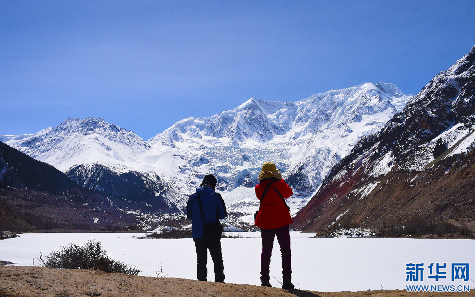 游客在米堆冰川觀景臺(tái)附近拍攝(3月25日攝)。 新華網(wǎng) 達(dá)次 攝