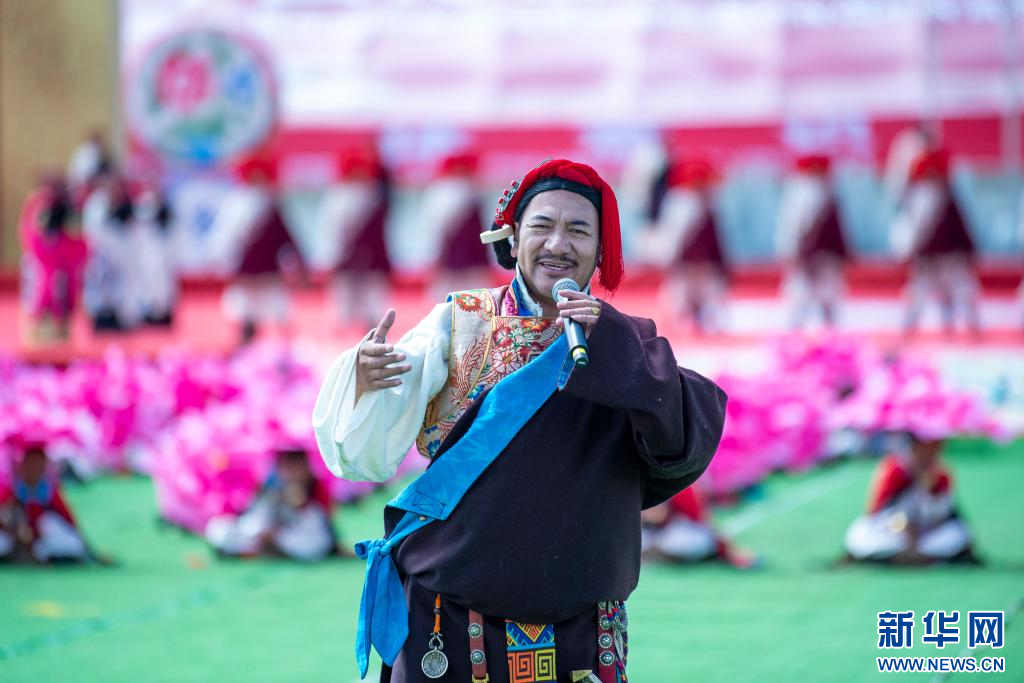 8月10日,歌手羅桑在開幕式上唱歌。新華網(wǎng) 旦增努布 攝