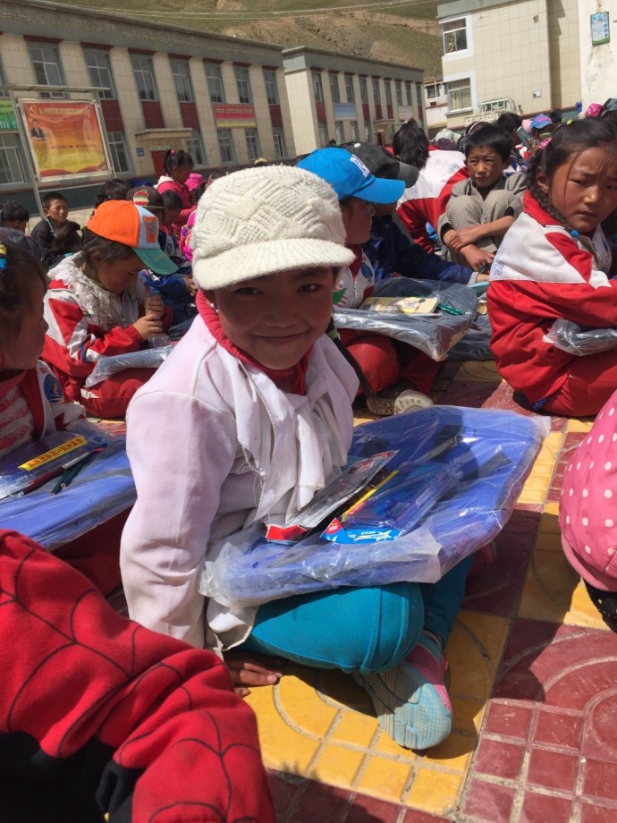 一天,我看到一個(gè)特別可愛的小女孩放學(xué)回家,就想到了自己的女兒,忍不住上前抱住她。我看見小女孩兒背著破舊的布包,就問道:“你背過新書包嗎?”她說:“我才三年級(jí),阿媽說等我再大些就能有新書包背了。”看著這個(gè)可愛的孩子,想到了遠(yuǎn)在成都不到2歲的女兒。自己總是省吃儉用,想把最好的都給她。再看看眼前這個(gè)孩子,我的眼睛濕潤(rùn)了……我下定決心,一定要讓這些沒有背上過新書包的孩子們?cè)谛聦W(xué)期有新的書包和文具。