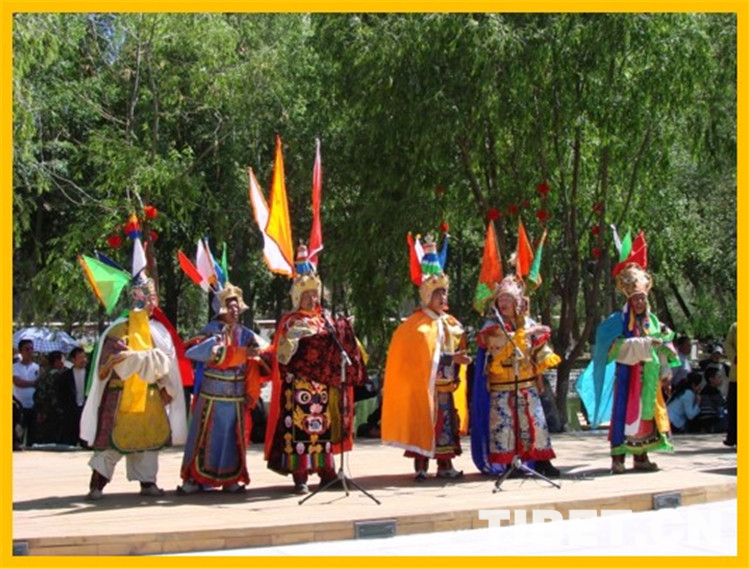圖為山南雅隆扎西雪巴藏戲。藏戲是藏族傳統(tǒng)戲劇的杰出代表,有西藏白面具藏戲、藍面具藏戲,青海黃南藏戲,甘肅甘南藏戲,四川嘉絨藏戲、康巴藏戲,同時西藏還有門巴戲等眾多藏戲流派。目前,已有12個傳統(tǒng)戲劇類非物質文化遺產項目列入國家和西藏自治區(qū)級名錄。