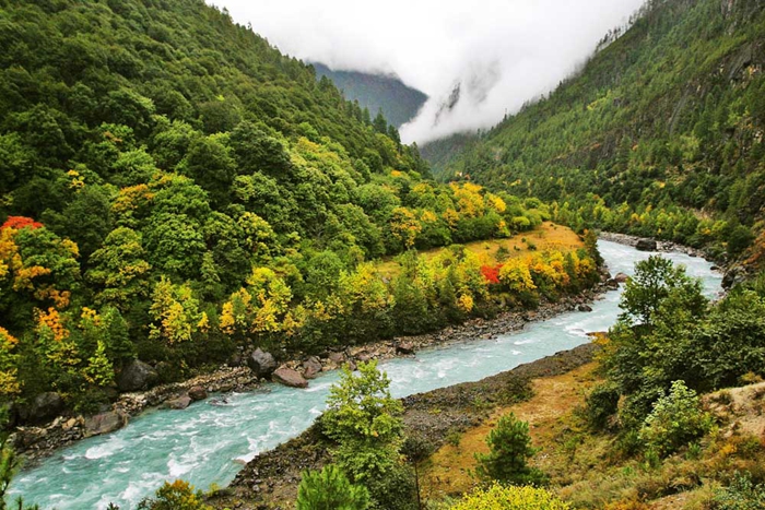 秋季的大峽谷由夏季單一的蔥蘢碧綠轉(zhuǎn)向秋季的五色斑斕。金色的松林、抬眼可見的冰川雪山,湛藍(lán)澄澈的天空,當(dāng)這一切倒映在碧綠的江水中,仿佛一幅生動的油畫。