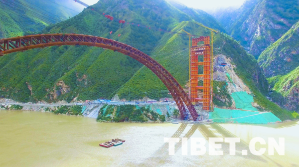 藏木特大橋位于西藏加查縣安饒鎮(zhèn)桑加峽谷內(nèi),地處海拔3350米的山地,主橋橫跨雅魯藏布大峽谷,水深66米,大橋采用430米中承式鋼管混凝土拱,拱高112米,是首座跨過雅魯藏布江的鐵路橋梁。