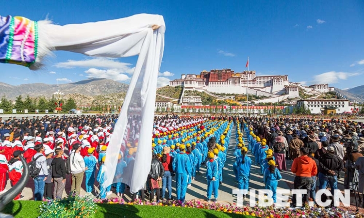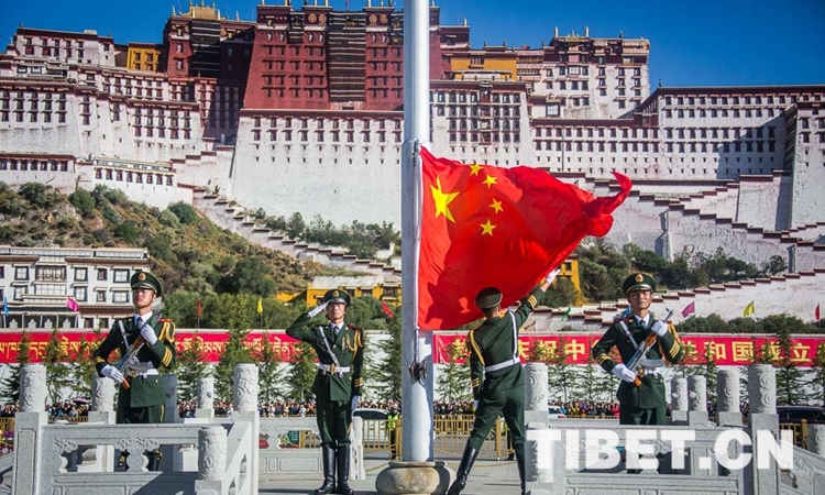 上午10時,伴隨著《義勇軍進(jìn)行曲》,五星紅旗在各族群眾的齊聲歌唱中緩緩升起。飄揚的五星紅旗下,雪域高原一派生機(jī)盎然的景象。在中國共產(chǎn)黨的領(lǐng)導(dǎo)下,雪域高原的面貌日新月異,昂首闊步走在社會主義康莊大道上,處處呈現(xiàn)出經(jīng)濟(jì)發(fā)展、社會進(jìn)步、文化繁榮、民生改善、民族團(tuán)結(jié)、宗教和睦、人民安居樂業(yè)的喜人局面。