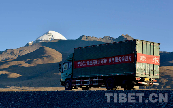 圖為京東物流車行駛在雪域高原上。