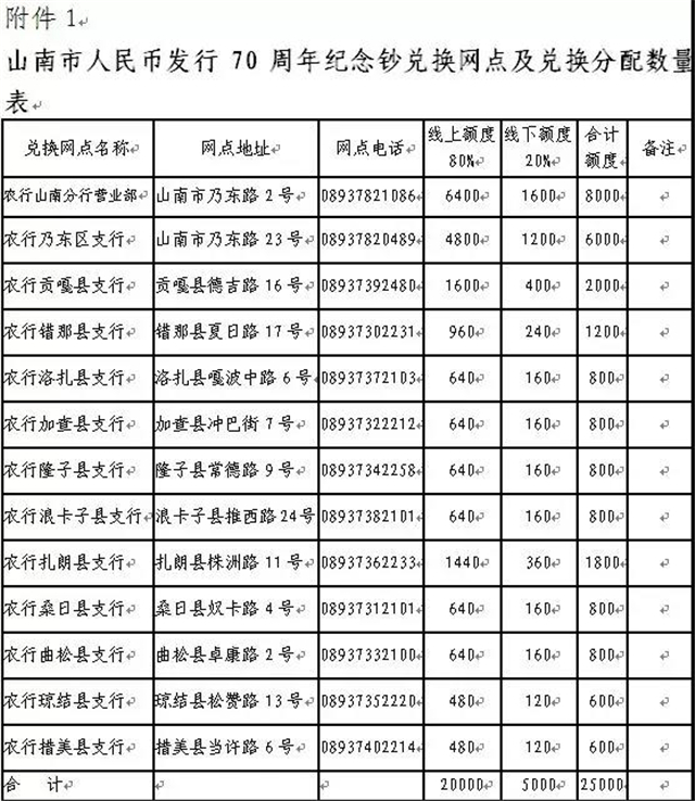 圖為山南市預(yù)約發(fā)行兌換網(wǎng)點(diǎn)及分配方案 圖片來源:中國(guó)人民銀行山南市中心支行