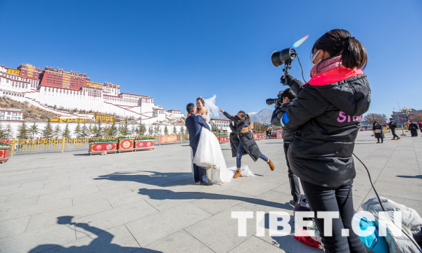 冬日的布達(dá)拉宮廣場(chǎng)上,身著盛裝的市民群眾三三兩兩的有說有笑;前來(lái)旅游的游客拉著行李箱漫步其中;不畏嚴(yán)寒拍攝婚紗照的新人露出甜蜜的笑容。