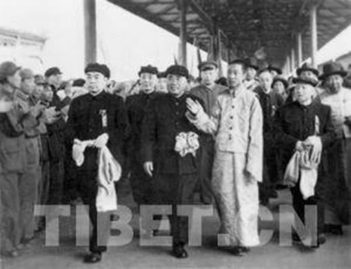 1951年4月27日,十世班禪首次進(jìn)京,周恩來總理、朱德總司令等黨和國家領(lǐng)導(dǎo)人前往車站迎接。