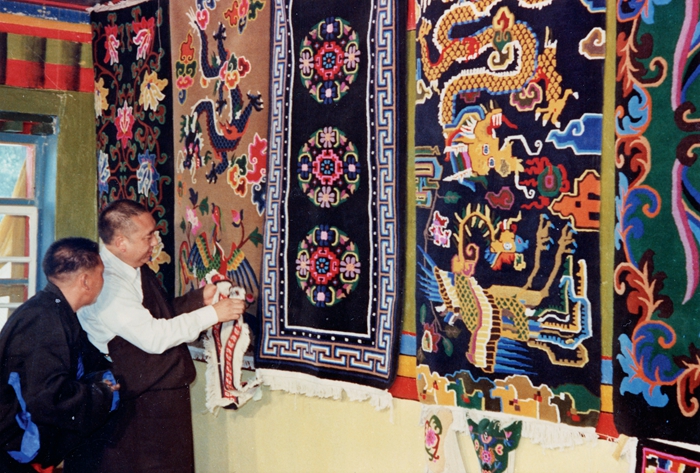 1982年7月,十世班禪大師視察拉薩團(tuán)結(jié)卡墊生產(chǎn)合作社。劉麗嘉攝