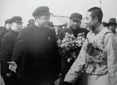 1951年4月中旬,習(xí)仲勛與十世班禪第一次會(huì)面。那時(shí),十世班禪率領(lǐng)班禪堪布會(huì)議廳官員赴京途經(jīng)西安,習(xí)仲勛作為西北局和西北軍政委員會(huì)主要負(fù)責(zé)人,到機(jī)場(chǎng)迎接。班禪走下飛機(jī)時(shí),一個(gè)眉清目秀、和善聰慧、舉止文雅、彬彬有禮的英俊藏族少年活佛形象,出現(xiàn)在習(xí)仲勛的眼前。在飛機(jī)舷梯下,十世班禪緊緊握住習(xí)仲勛的手,心情激動(dòng)地說:“我們是專程去北京向毛主席致敬的!我要把藏族人民對(duì)中央人民政府和毛主席的良好祝愿親口轉(zhuǎn)達(dá)給毛主席?!痹诋?dāng)晚歡迎會(huì)上,十世班禪表示堅(jiān)決擁護(hù)中央人民政府,決心與西藏各界愛國(guó)人士一道為西藏的解放和藏族人民的團(tuán)結(jié)努力奮斗?!坝兄静辉谀旮摺?,十世班禪的愛國(guó)熱情和坦誠(chéng)豪爽的性格給習(xí)仲勛留下了深刻的印象。當(dāng)天,習(xí)仲勛把他接到西北局大院自己家中,十世班禪與習(xí)仲勛的大兒子習(xí)富平同齡,兩人很快就熟稔起來。