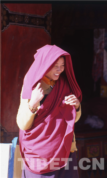 青樸山腰有一座叫溫扎寺的尼姑廟,尼姑們的生活所需大都靠家里補給,所以常有親人來此送糧食。這里的年輕尼姑們明麗健康活潑且大方,跟我們俏皮地笑,還向我借手機打電話,這讓青樸給我的感覺一下子輕快了許多。
