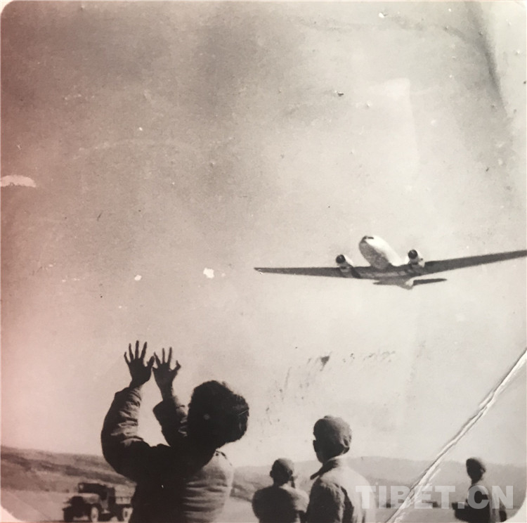 圖為空軍飛離甘孜機(jī)場。 翻拍:龍真多吉