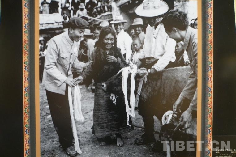 圖為卓瑪(中)分到土地和牲畜。 攝影:陳宗烈 翻拍:孫健