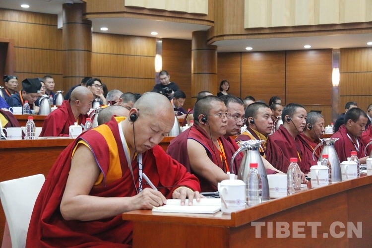 圖為正在中華文化學(xué)院(中央社會(huì)主義學(xué)院)學(xué)習(xí)的西藏自治區(qū)各大寺廟的中青年經(jīng)師學(xué)員在學(xué)術(shù)論壇上認(rèn)真作筆記 攝影:易文文