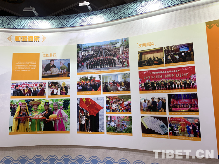 隨后,在講解員的帶領(lǐng)下,觀眾來到“大美青海——新中國成立70周年青海民族自治地方發(fā)展成就展”海東市主題館,參觀了由“幸福海東”“美麗海東”“和諧海東”三大板塊組成的圖文展覽。
